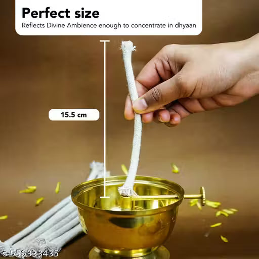 Elevate your pooja rituals with Akhand Diya Wicks, crafted from 100% pure cotton to ensure a clean, steady, and long-lasting flame. These handmade, twisted cotton wicks are the perfect fit for Akhand Diyas and other oil lamps, offering enhanced absorption for extended burn time. Ideal for religious ceremonies, daily prayers, and festive occasions, these cotton wicks for pooja are versatile enough for use as diya batti, puja batti, and akhand jyot batti. Designed to symbolize purity and devotion, these cotton diya batti for puja are smoke-free and mess-free, ensuring a serene and hassle-free worship experience. The durable and elegant design retains its shape after soaking in oil or ghee, making these wicks a reliable choice for traditional and modern diyas. Whether you're celebrating Navratri, Diwali, or performing daily rituals, these long batti for Akhand Jyot are the perfect addition to your spiritual practices.